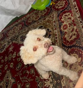 Breed: Mutipoo Color: Light tan/whiteish