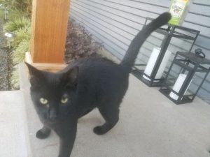 Little Boy is a smaller all black cat with a "notched" left ear. He is shy but will come to his name.
