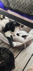 Friendly affectionate mellow loves to lye around anywhere and sleep