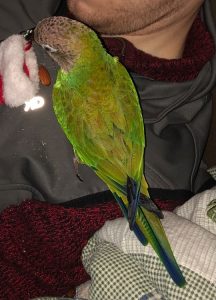 Dusky Conure loves to snuggle & says peeks boo. Loves almonds and cashews. And Grapes. Loves Adams family song!