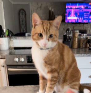 Orange/ white tabby. Male 1 year old. Wearing blue collar with bell at the time of disappearance.