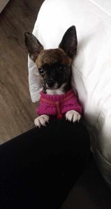 White paws. Looks like socks. White chest and tummy. Big ears. Super friendly . She has seizures when her blood sugar gets low