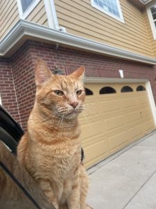 Orange has spots on his nose. He had a collar with an air tag on but it came off. Grey collar with a reflective tag. We just want him home
