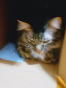 Has white paws and a very fluffy and long tail, likes baked chicken