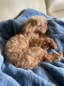 Very tiny and brown dog kinda old and have white on her chest, she is wearing a pink sparkly collar but has no identification
