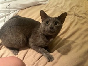 Chopper is deaf, 1yo intact male. White patch on chest. Sweet but skittish