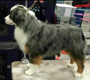 Mini blue merle Australian shepherd. Dragging blue leash. I literally had just gotten her from a kennel in Pennsylvania. I was taking her for her first walk. I dropped the leash and she bolted. The picture is actually of her brother. He has the same markings. But I will send you a picture of her face.