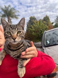 Very friendly, does not like other animals especially dogs, has distinctive black circles with black blob inside on both sides