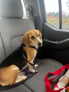 She is a small beagle with a black harness on. She is scared of people so please try to lure her with treats. She prefers women. She may need to be trapped. We just adopted her and are desperate to get her back. Please help.