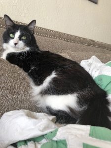 Black and white tuxedo cat, medium hair, neutered male cat. No collar at the time he went missing, and about 10 pounds. $500 reward if found.