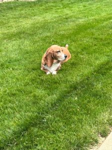 Breed: Basset hound Color: Brown and white