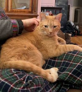 Male Orange Taby cat. Neutered and Microchipped. Claws intact. Very food motivated.
