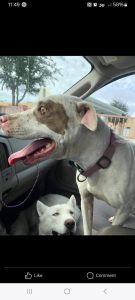 Breed: Pit bull Color: White