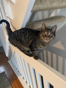 This is my dad’s cat Bucky. He is tiger striped and microchipped