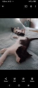 The pic is from a year ago so he’s a bit bigger than now. He has lung hair both ears or solid black so is his nose. He has four white paws and a black spot on one of his back legs. I’m not sure if there’s one on the other leg. It could be a girl I never checked, and I never had them fixed.