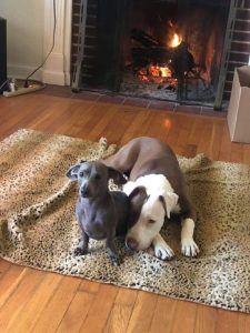 Grey hair small daachund last seen with female pit in heat. Very protective of female but also very friendly