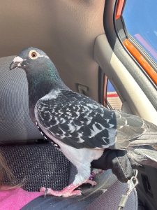 Has a purple band (ring) on his left foot that says “GLPR” and has a phone number for a rescue.