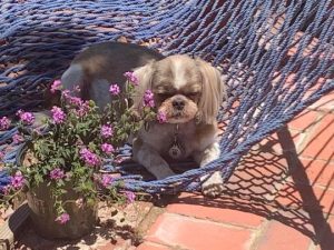 Nine-year-old Llasa Apso mix, about 20 pounds, friendly but fearful of other dogs. He is chipped and is wearing a tag with his name (Junior) on it and my phone number.