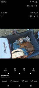 Mostly deaf and blind 14 years old very friendly. Not many teeth. Red coat white face.