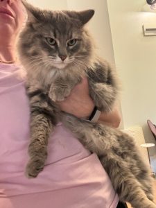 Breed: Long hair tabby Color: Gray white