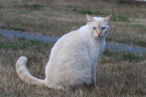 Gold rings on tail, gold markings on face and ears, cream gold splash on back, blue eyes