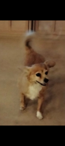 Breed: Long haired Chihuahua Color: Light brown and white chest