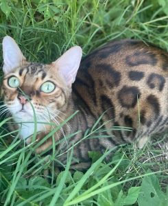 Miko is a 4-year old Bengal cat. His coat is brown with black leopard-like spots.