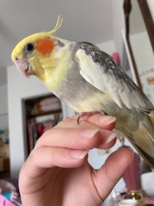Pebbles is 7.5 years old, very friendly, & will sit on anyone’s shoulders. He is a pearl pied male, fully-flighted, likes to sing and whistle, & loves millet + veggies. Reward offered if he is found.