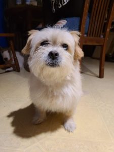 my grandparents senior maltese mix, he's friendly and likes other dogs.