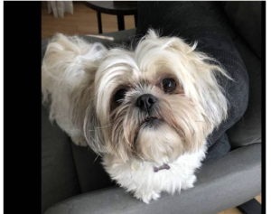 Breed: Shihtzu Color: Mostly white, some beige and grey in coat