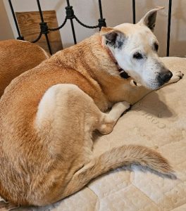 Princess is a Labrador Mix who is around 15 - 16 years old. She has yellow fur with a white underbelly, a black nose, semi-erect ears, short fair, a scar above her nose, and a small black dot located on her forehead. Due to her age she is often confused and has trouble walking and sometimes seeing, so best to approach gently and cautiously. If found contact 325-716-7405 and 325-234-6115, we are offering a $50 reward.