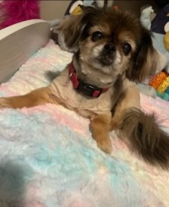 She is a brown/tan 15 year old dog. She is about 4/5 pounds and very friendly. She loves being chased and is very fast. She sometimes makes this snorting noise when she breaths due to a collapsed septum. We are offering a cash reward for any info that leads to the return of Sadie
