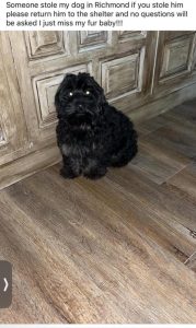 My puppy was taken at Harry G. Daniel park in chesterfield Virginia at 1:30pm on 5/11/2024 by a silver car. Please return him to me please no questions asked just trying to find my fur baby. Single mom and this was the one thing I got my kids to bring them joy. Please return him to us.