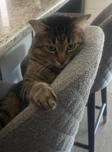 Breed: Tabby domestic short hair Color: Grey with some black stripes