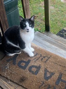 Black and white. 14lbs. Shy, do not approach he will run away. Mainly outdoors. Chipped.