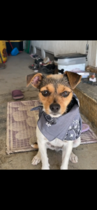Breed: Beagle chihuahua mix Color: White, black, and brown