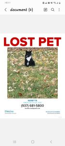 Black with white mustache, white chest, white feet. Lilac moon/stars collar with purple star bell. Green eyes