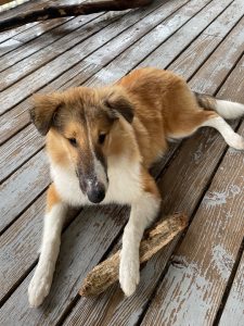 Breed: Rough Collie Color: Tan and white with black mask