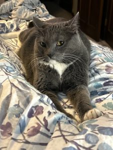 Breed: Domestic Shorthair Color: Grey and white