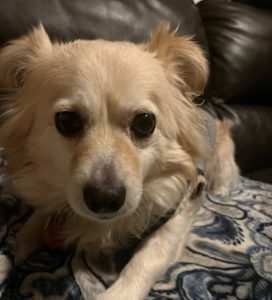 Coco was wearing a gray collar with a red license plate. He responds to his name and is very shy.
