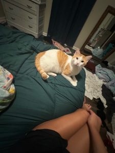 His left ear is clipped and he has a tattoo on his belly. He is neutered. He’s my daughter’s emotional support animal.
