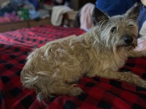 Terrier mix, about forty pounds, loves people, doesn’t like other dogs.