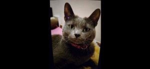 All gray, green/yellowish eyes; smaller in statue; thin tail usually curls at the end when in movement