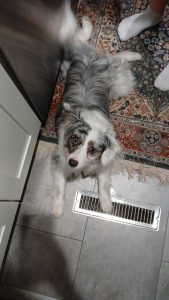 Breed: Australian Shepherd/Papillon Color: Mostly gray and white with a little brown and black