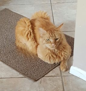 Lieutenant got out without his collar on. He is a domestic long hair, orange cat. He has a longer than usual tail with a whiteish tip. He may be skittish with new people but he is very sweet.