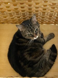 Tiger-striped domestic shorthair cat last seen wearing a blue collar and tag