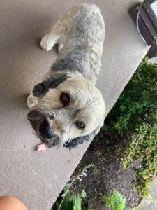 Breed: Shih tzu/yorkie Color: White with tan and black throughly coat / black ears