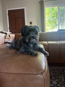 Black 5-year-old yorkie mix white and black, 5 pounds. Had a blue faded royal blue collar on when last seen. Is microchipped. Last update a middle-aged male in a red pickup truck picked her up on the corner of Carr and Colfax.