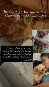 Missing dog ! Last seen in city la habrá near walnut elementary school! Near 625 N Walnut St