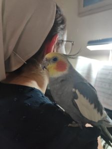 Jax is a very tame gray cockatiel with orange cheeks and distinct white wing bars. He sings If You're Happy and You Know It and screeches when he hears it. He flew away on 8-31-25 from Glenmont, OH.